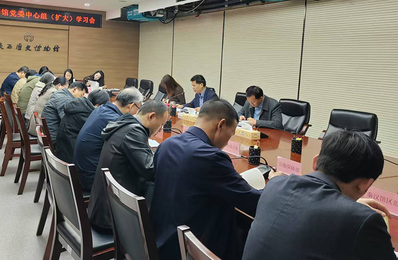 11月10日,陕西历史博物馆召开党委中心组(扩大)学习会,传达学习党的二十届四中全会精神,馆党委副书记李树青主持会议并讲话,党委委员、各支部(部门)负责人和青年理论学习小组组长参加。