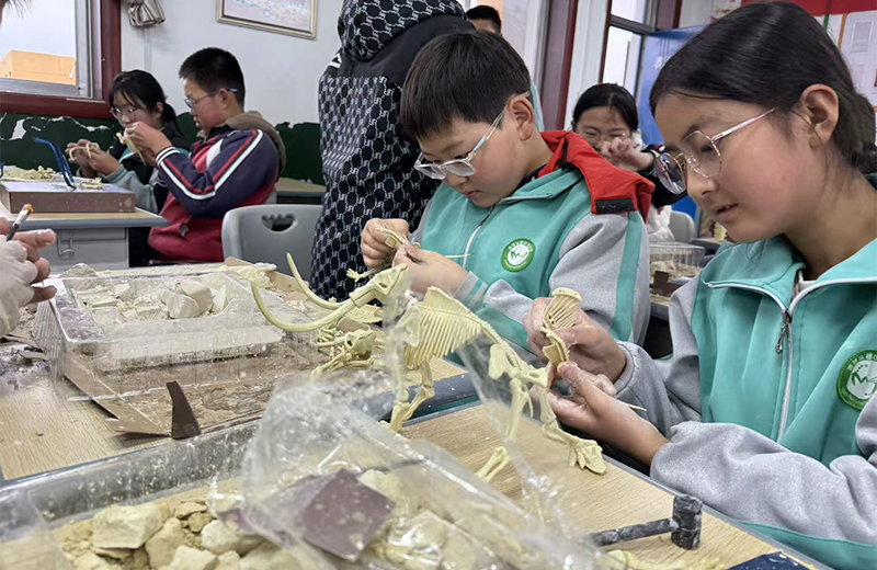 10月21日,旬邑县博物馆“探寻远古生物遗迹 追溯古豳历史根脉”主题社教活动走进湫坡头中学,60余名七年级学生化身“小小考古家”,在趣味互动中开启一场跨越百万年的史前文明探索之旅。