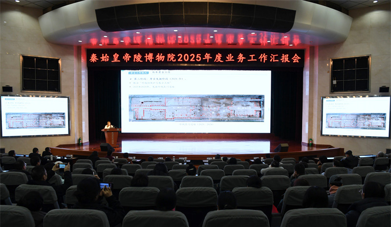 本次业务汇报会共有23位业务人员分别从考古发现与研究、文物保护与国际合作、遗产保护与管理、遗产展示与传播4个部分,全面展示该院2025年度业务工作成果和收获。汇报内容涵盖秦陵遗址区2025年考古新发现、秦兵马俑文保技术研究、与英法两国开展国际合作项目进展、秦陵博物院大遗址保护研究以及文物包装和数字化管理进展、秦陵博物院社教工作开展与展览展陈提升策略等。与会专家对汇报内容进行点评,并为该馆业务工作的开展提出诸多建设性意见。