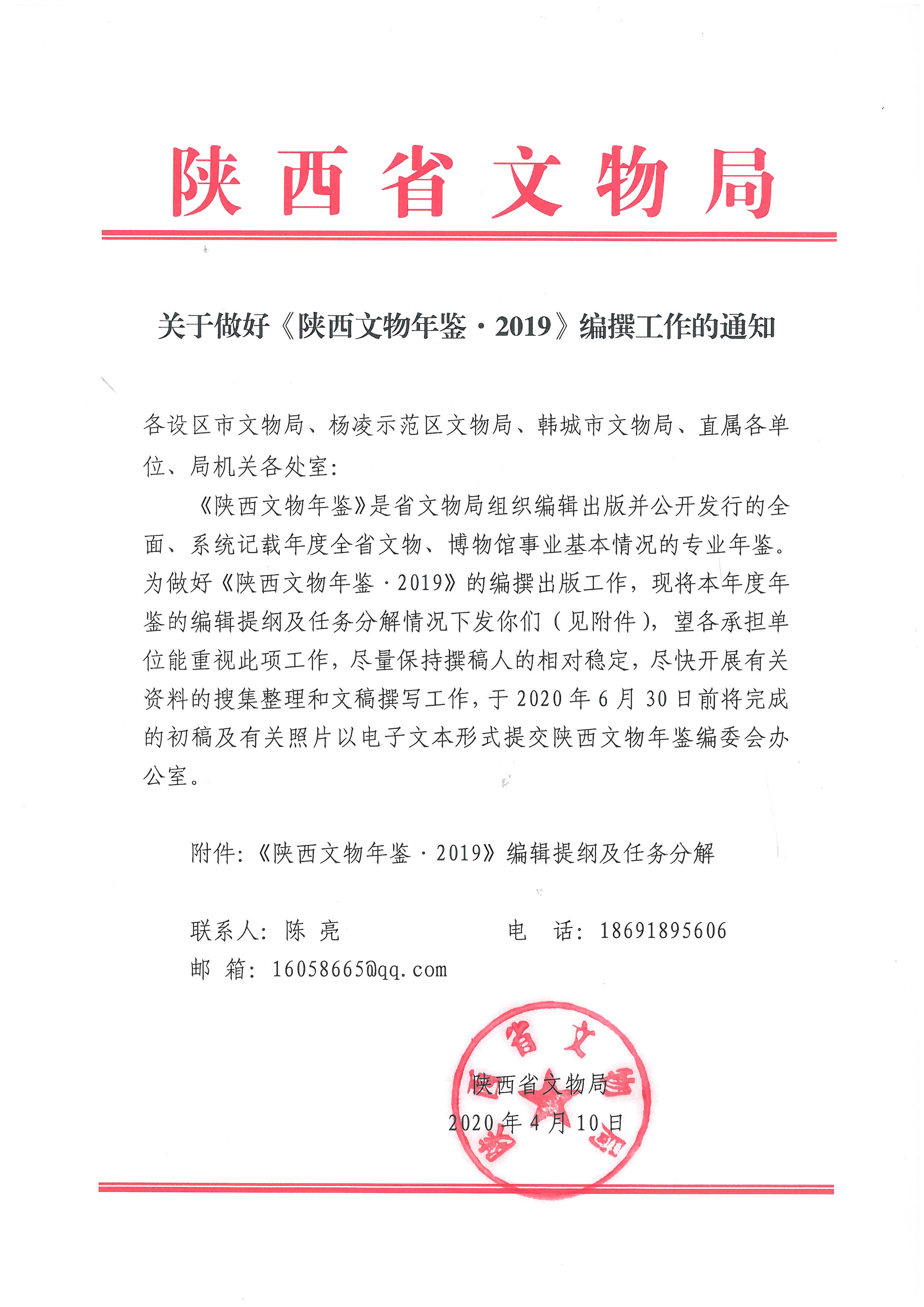 关于做好《陕西文物年鉴2019》编撰工作的通知