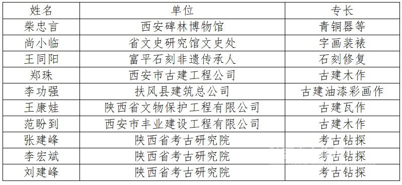 为了整合我省传统工匠资源、发挥传统技术在文化遗产保护中的作用、培养更多陕西工匠,在“丝绸之路文化遗产保护工匠联盟”的组织下,我省开展了首批陕西优秀工匠的评选活动。省文物局直属单位、社会文物保护企业的文保专家与民间文物保护相关传统技术传承人、知名工匠共同组成专业委员会,对全省传统工匠数据库中已调查登记的1247余名传统工匠进行了评选,最终推选出10名在文物保护修复、文物建筑修缮、考古钻探方面有专业传承和技术特长、并有一定贡献的优秀工匠。