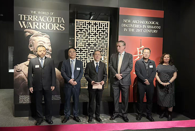 当地时间11月13日晚,由陕西省文物局主办,陕西省文物交流中心、秦始皇帝陵博物院和美国宝尔博物馆、休斯顿自然科学艺术博物馆承办的“不止秦俑——21世纪陕西考古新发现”展览在休斯顿自然科学博物馆开幕,中国驻美大使馆公使衔参赞(文化)陈春梅、陕西省文物局副局长马宝收、休斯顿自然科学博物馆馆长乔·百奇和休斯顿当地政商、文化界约60人参加开幕式。