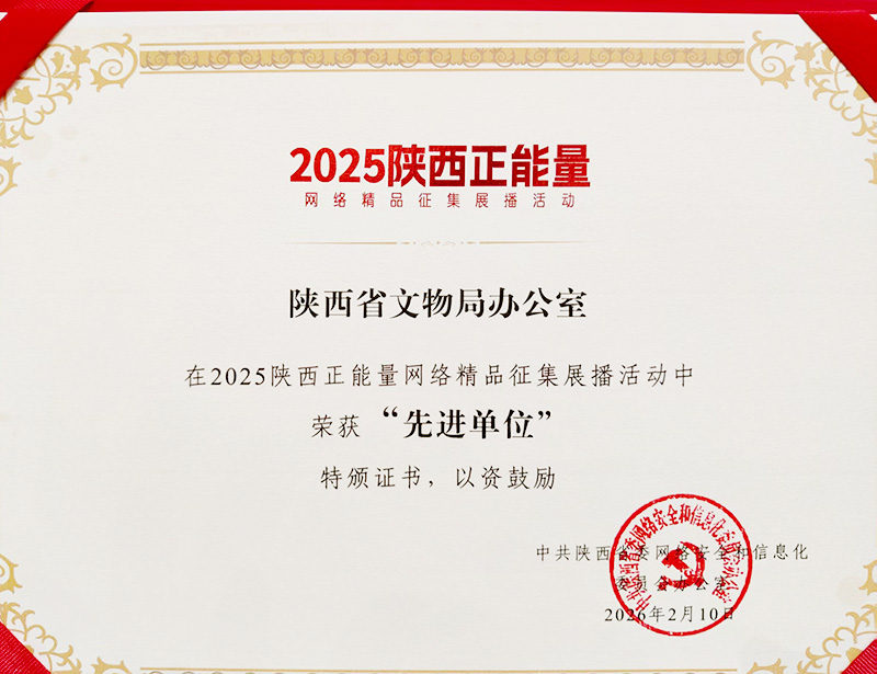 2月10日,由陕西省委网信办主办的“2025年陕西正能量网络精品展示活动”在西安举行,通报表彰2025年正能量网络传播精品和先进单位,省文物局办公室被表彰为“先进单位”,局直属单位4件作品入选“正能量网络精品”。