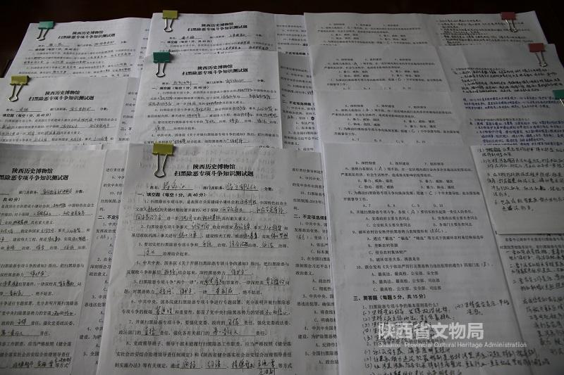 为进一步提高职工对扫黑除恶专项斗争的知晓率和参与率,强化职工打赢扫黑除恶专项斗争的责任感、使命感,持续推动全馆扫黑除恶专项整治行动向纵深发展,4月16日至4月19日,陕历博在全馆职工中开展了扫黑除恶专项斗争知识答题活动,答题以笔试的形式进行,内容紧扣文物安全领域扫黑除恶应知应会基础知识,同时,为了提升职工参与度,采取有奖答题的方式对答题优秀的职工将予以奖励,目前,阅卷工作正在进行中。