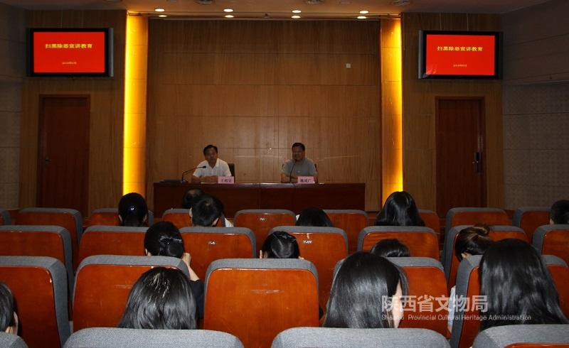 为坚决贯彻落实中央扫黑除恶督导组要求,根据省委、省政府统一安排部署,按照扎实落实“三个聚焦三个求突破”和“五个再来一遍”、“三个大起底”工作部署。6月18日,省文物局督查与安全处副调研员王相宜同志莅临陕西历史博物馆,为全馆干部职工开展扫黑除恶宣讲教育,宣讲教育由副馆长魏成广主持,陕历博党委书记、馆长强跃及全馆职工200余人,共同聆听了宣讲。